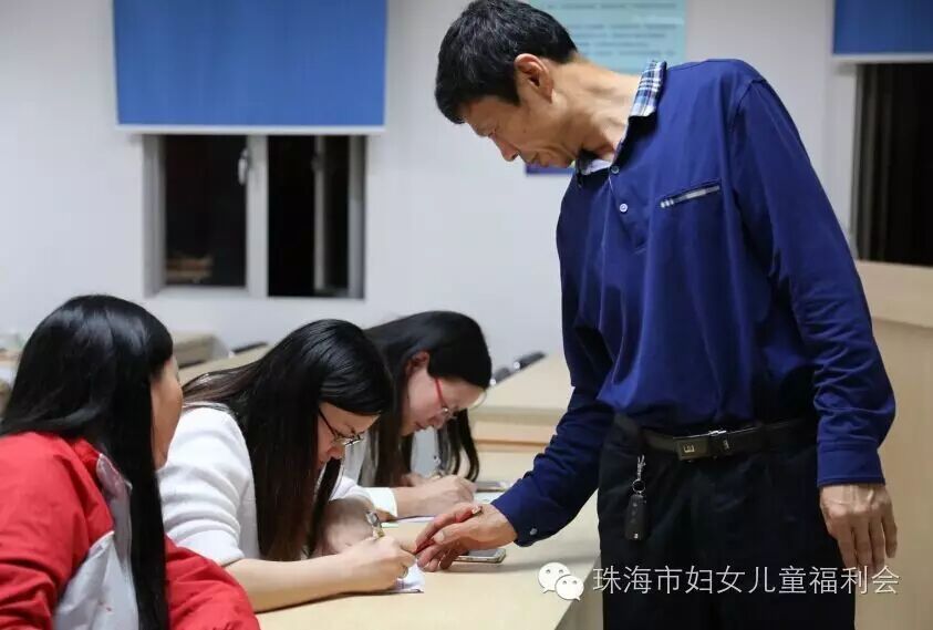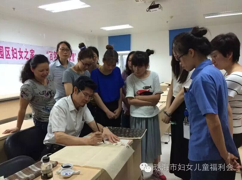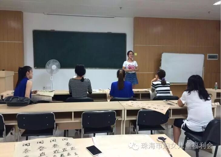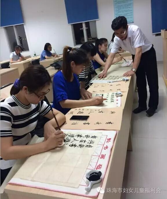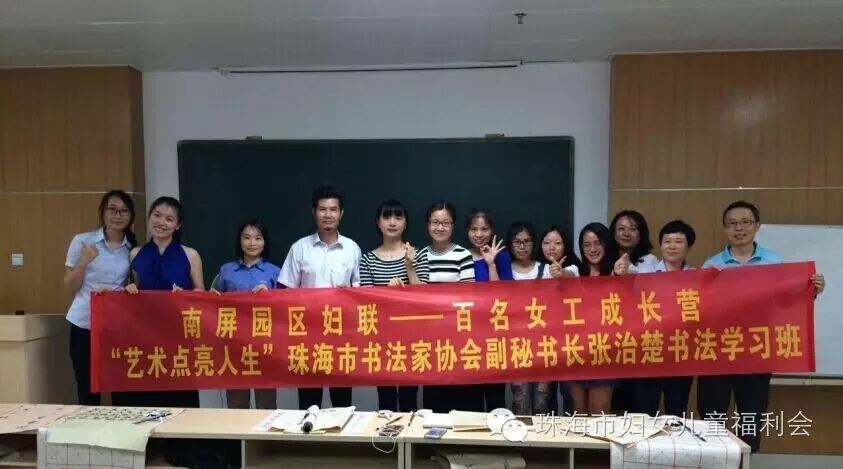 珠海市妇女儿童福利会承接政府项目“南屏园区妇女之家-百名女工成长营”于2016年4月至5月期间,在南屏科技园管委会香洲区职业技能培训基地开展了硬笔书法小组和毛笔书法小组活动,分别邀请了珠海市硬笔书法协会张忠成老师和珠海市书法家协会副秘书长张治楚老师为园区女职工授课。
