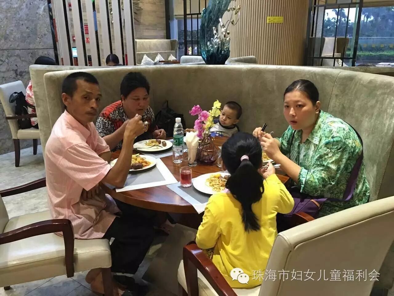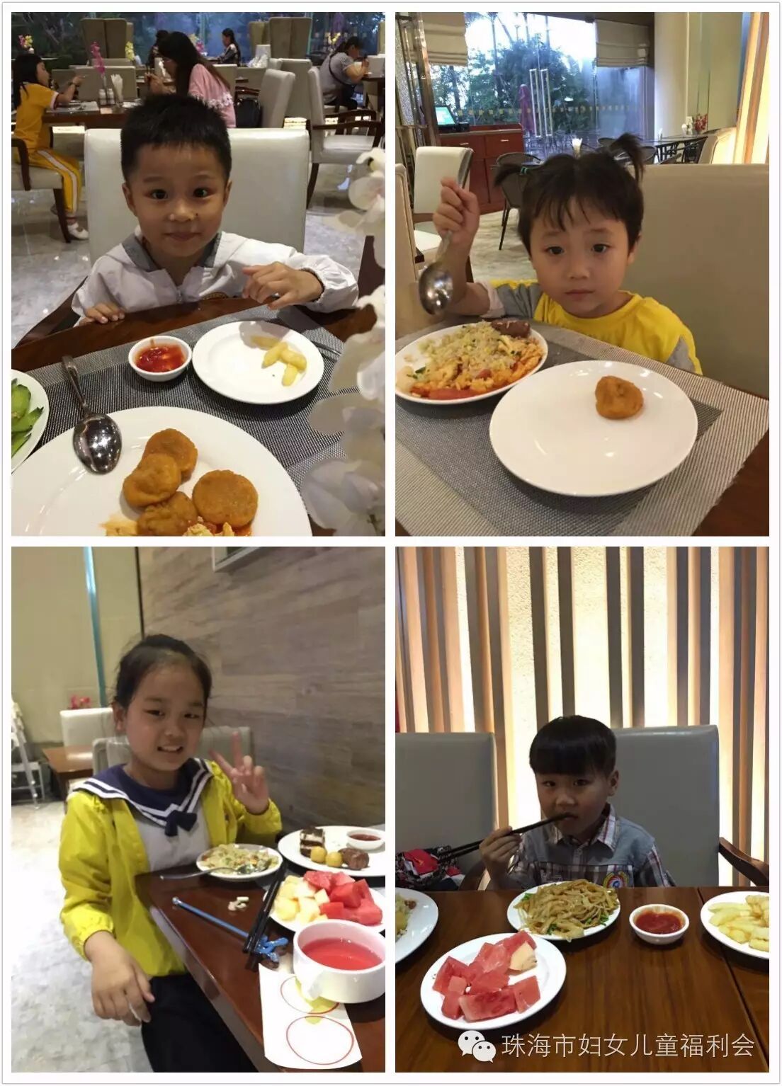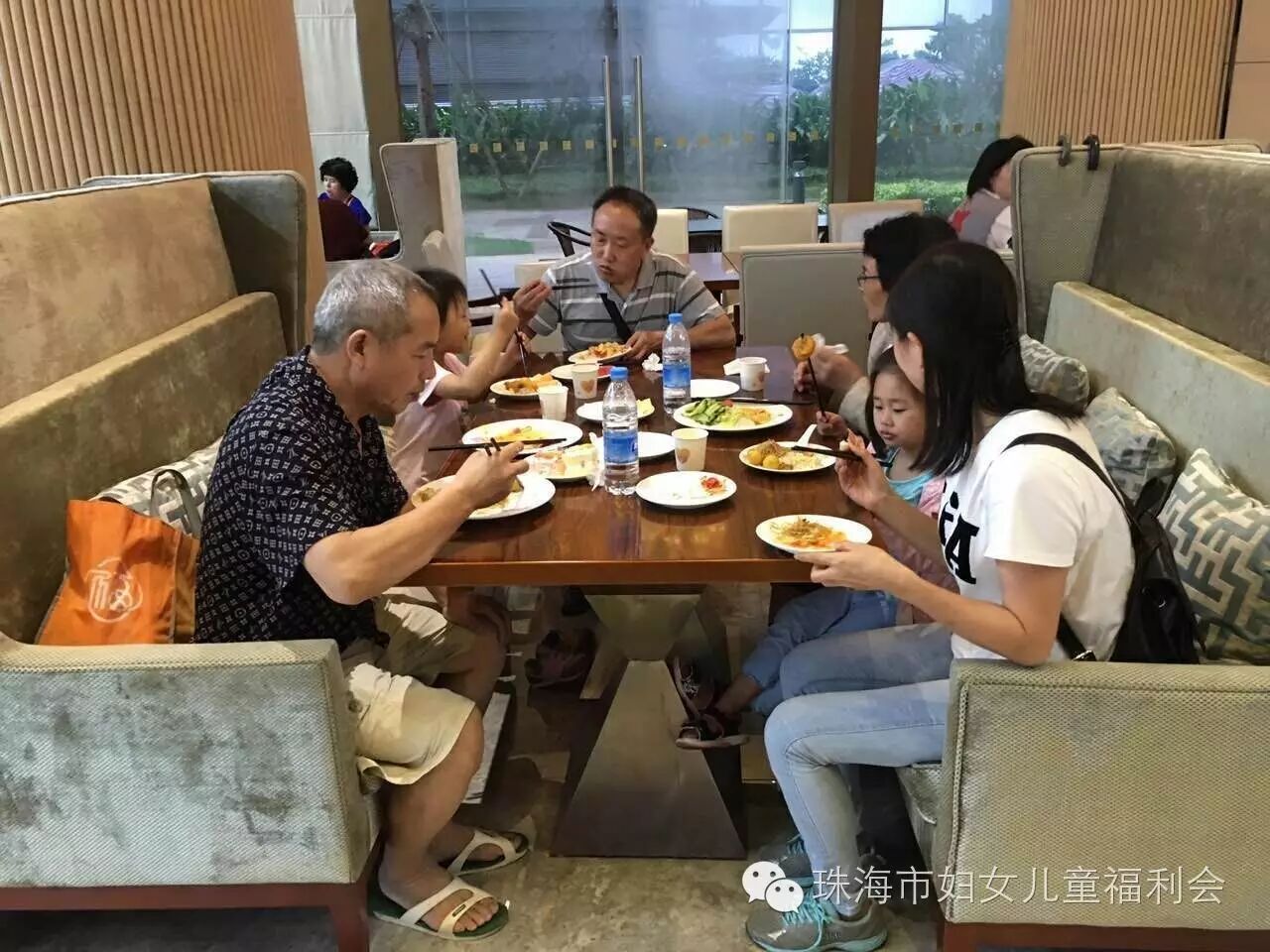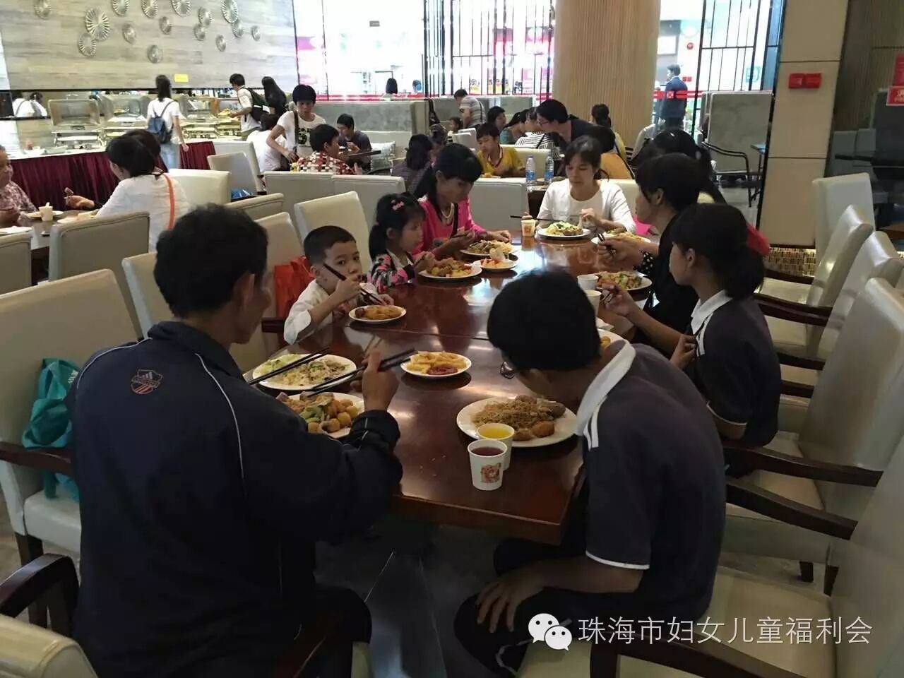 当天下午,斗门区、香洲区、金湾区、高栏港区妇联工作人员,分别将参加活动的家庭从各个村镇接到集合地点,再乘坐大巴前往华发中演大剧院行政公寓酒店,因为是暴雨天气,大家风雨兼程陆续赶到活动地点。福利会工作人员举行了简单的欢迎仪式,并为每个家庭派发福利会LOGO贴,酒店工作人员为小天使宝贝和康乃馨妈妈们准备了丰盛了自助晚餐,还有很多特别为可爱的小天使宝宝们准备的小吃呦,在工作人员的指引下,大家有序排队取餐用餐,期间不时的传来他们的笑声,并不时的相互分享着自己选来的美食,爱意满满,温馨美好!