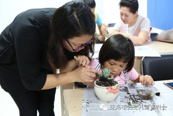 活动中,亲子们的参与热情都非常高,对植物充满了兴趣,不但在短时间内根据园艺老师的指导完成了作品,还给自己的植物取了名字,有“快乐家族”、“吉祥三宝”、“粉红佳人”等非常有寓意的名字;我们社工也为每一对亲子拍摄了一张亲子照送给他们做为留念,在活动的最后,社工还引导孩子们以拥抱的方式或对妈妈说“我爱你”表达对妈妈的爱,以及在活动的最后,孩子们唱了一首《世上只有妈妈好》作为母亲节的礼物送给了妈妈。
