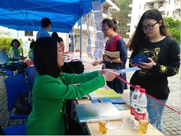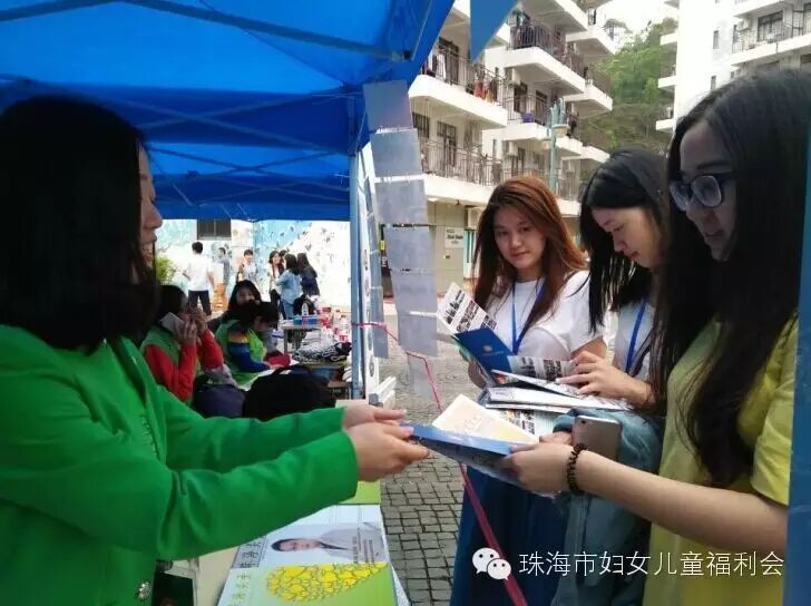 当天陆陆续续有大学生到我们珠海市妇女儿童福利会展摊进行咨询和了解,并有意愿来参加志愿者活动。
