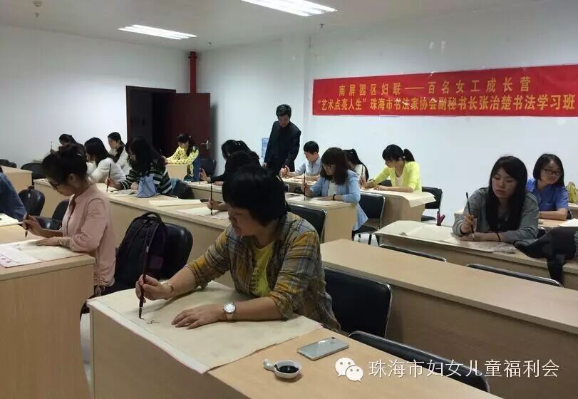 珠海市妇女儿童福利会承接政府项目“南屏园区妇女之家——百名女工成长营”在4月中旬为南屏园区女职工开展了硬笔书法班和毛笔书法班,由于名额有限,书法班共吸引了50名女职工参与到学习中。