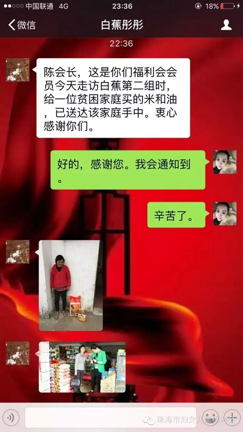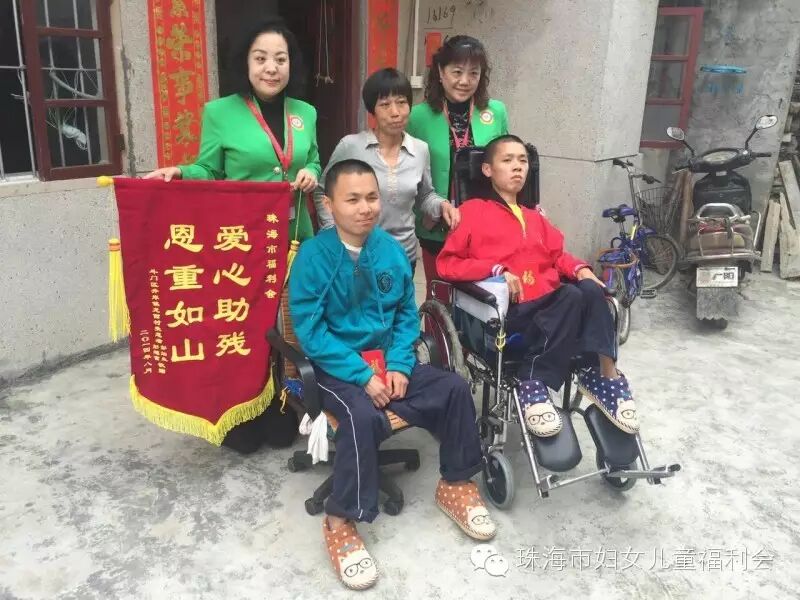 “最后,会长陈伟光一行去看望了我会 2012年12月与珠海市妇联一起帮扶的斗门肌无力渐冻人两兄弟,近四年来,我会和社会各界始终关注和帮扶这个家庭,中间的过程艰辛,结果却是完美的,付出有了价值,我们满心欢喜,妈妈给福利会送了很早就准备好的锦旗: 爱心助残,恩重如山!感恩这一路的坚持,感恩这一路有您的相伴,感恩这一路我们勇敢前行!”