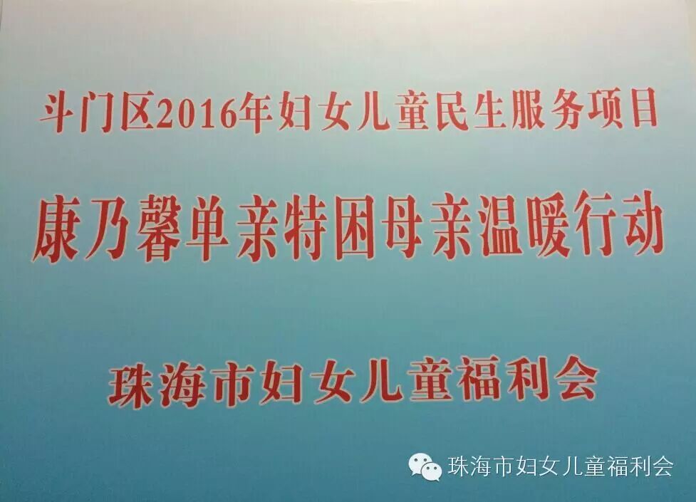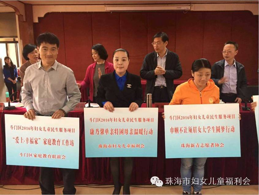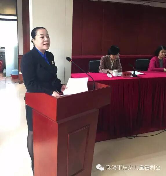 我会被授予“2015年服务妇女儿童优秀社团”,康乃馨单亲特困母亲温暖行动与“大手牵小手”小天使助学行动,做为“2016年妇女儿童民生服务项目”予以授牌,会长就两年来对斗门区的整体帮扶情况和2016项目开展计划发表讲话!