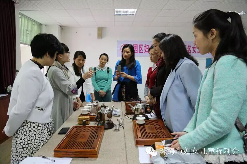 3月5日下午,珠海市妇女儿童福利会、南屏园区妇女之家-百名女工成长营项目社工邀请了蜗居茶艺培训中学的茶艺师团队,开展了南屏园区女职工茶艺培训班第一期。活动异常火爆,在发出通知半小时内20个名额就已报满。