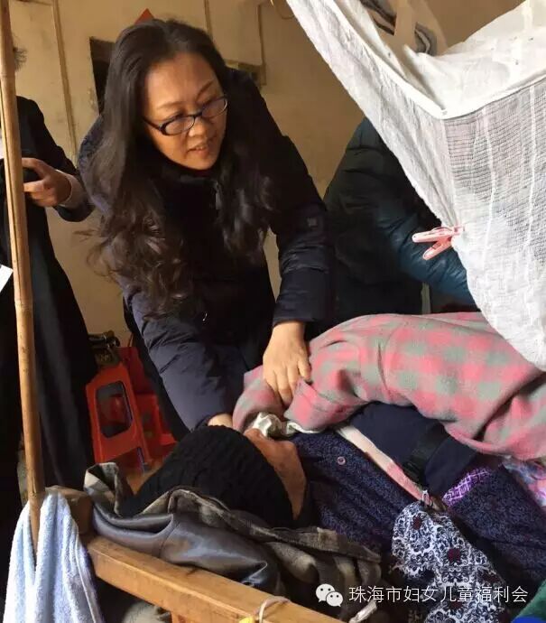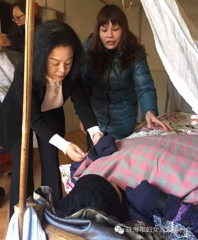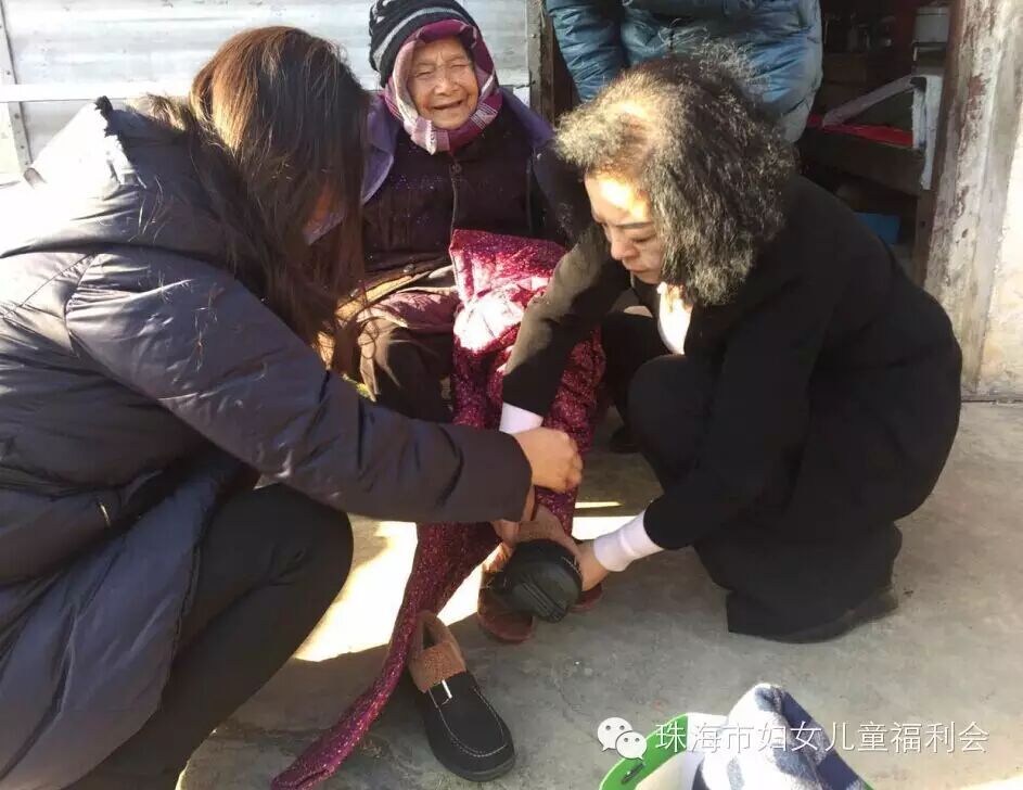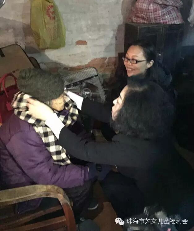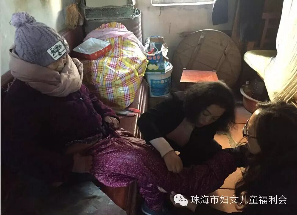 在百年一遇的寒冬,这些老人居住的房屋已是破旧不堪,即使门窗关闭,依然挡不住屋外的瑟瑟寒风,在慰问的几个老人家中,我们看到,有的老人穿着单薄的衣物,手脚冰凉,浑身颤抖;有一位老人竟穿着凉鞋,双脚均已生满冻疮,右脚脚趾已有两根坏死,身上盖得被子硬得像石头一般,让人心痛;有的老人蜷缩在床上,靠单薄的棉被及衣物取暖。市妇联副主席刘敬华及市妇女儿童福利会会长陈伟光带领随行人员,为老人们铺房、穿衣、穿鞋,将厚实的帽子、围巾及手套为老人戴上,希望通过身体力行的关爱,为老人送去温暖。