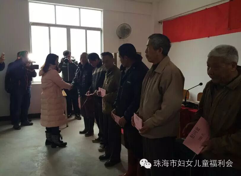 昨日上午8:00,我会会长陈伟光,副会长张雨晴,会员杜多多、邹艳平、黄燕玲及秘书处工作人员与珠海电视台生活频道周治国、扶志新及记者等一行17人,冒雨驱车四小时前往阳春三甲镇庞洞村慰问特困户,并为他们送去新年的问候与祝福。