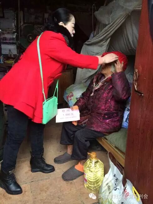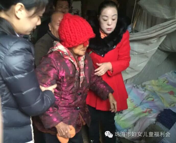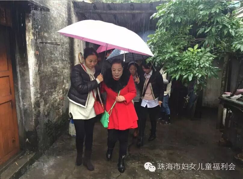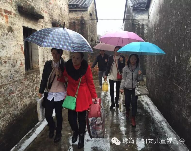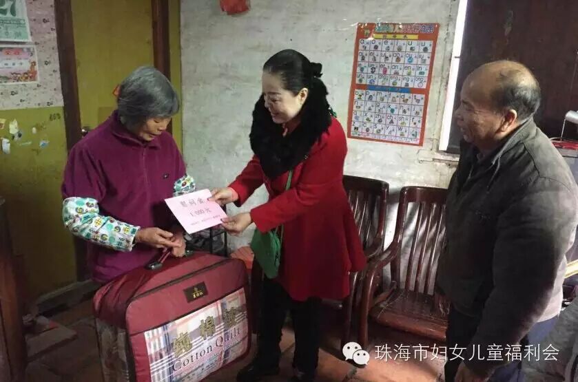 今天上午,珠海市妇女儿童福利会会长陈伟光和秘书处工作人员一行8人冒雨到斗门莲洲镇石龙村慰问困难户,带着慰问金,棉被、大米、油等慰问品一路风雨兼程,在村委会的带领下去探望三名90多岁的贫困老人,给他们带去新年的祝福。
