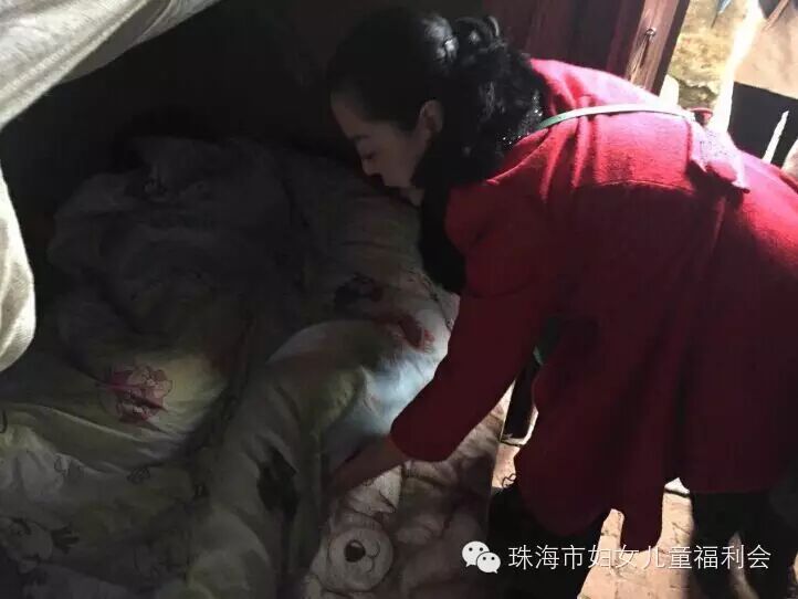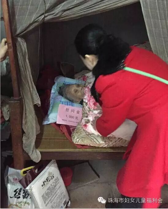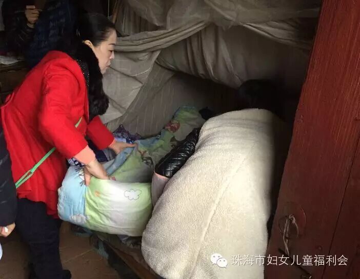 在这慰问的过程中,我们发现,有一位老人已瘫痪十多年,常年卧病在床,生活起居全由儿子一人照料,家境贫寒,老人早年耳朵已经失聪,她听不见我们讲话,但是却用她那有神的眼睛望着我们,微微点点头,像是在跟我们交流;还有一位老人是村里的留守老人,孩子都在外打工,常年不回家,留下老人独自生活在一个十来平米的小房子里,偶尔有村委会的工作人员来帮忙照料;另外一位老人女儿离异,丢下两个小孩,老人独自带着孩子,生活十分艰辛,孩子读书成了最大的问题。市妇女儿童福利会陈会长带领随行人员,亲自将1000元慰问金和价值300元的慰问品递交给这几位老人,并亲自为老人铺床盖被,让这冬日的寒冷更是温暖了许多。