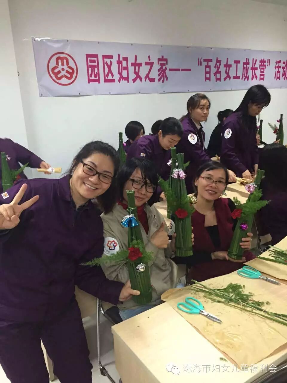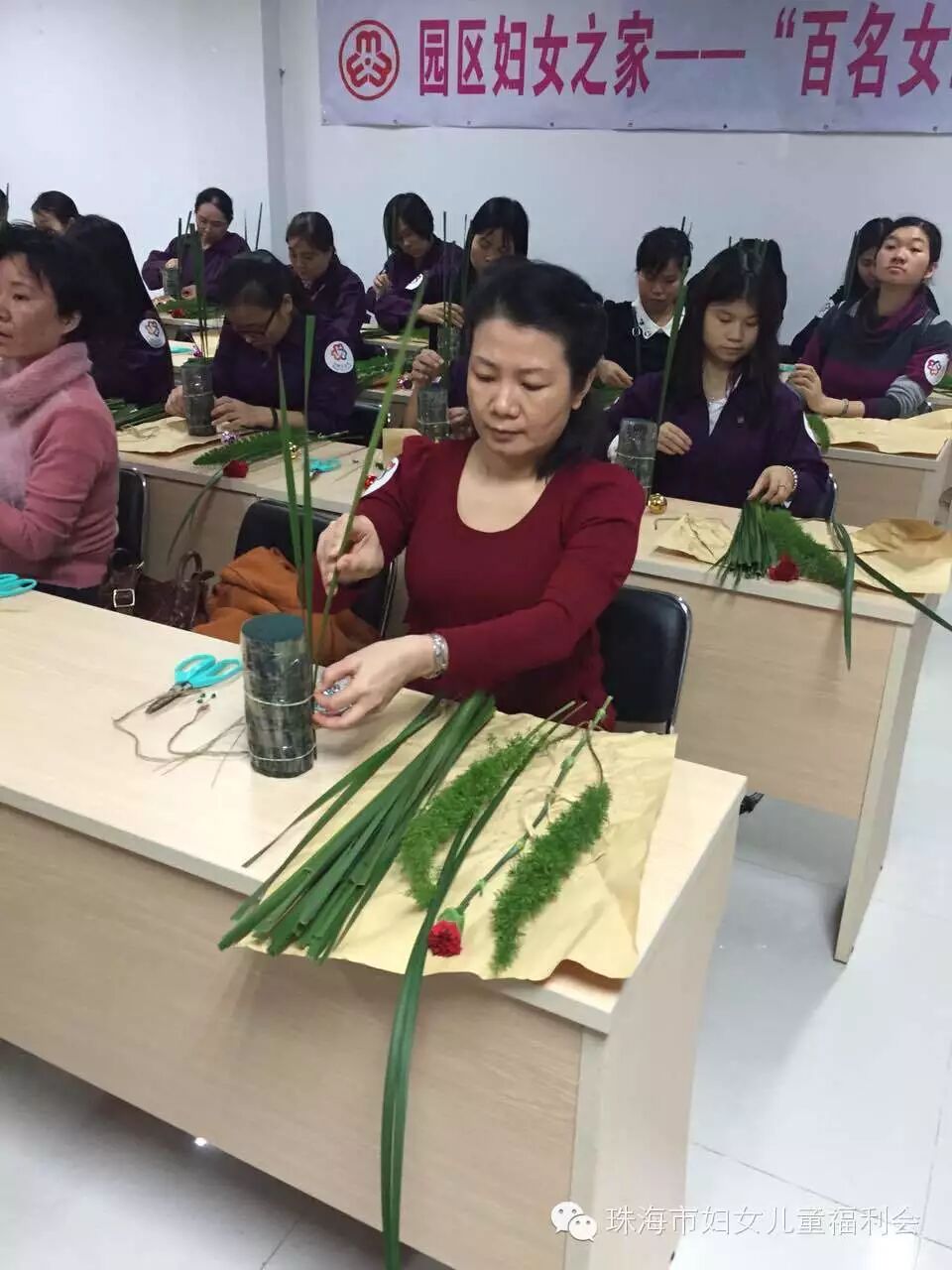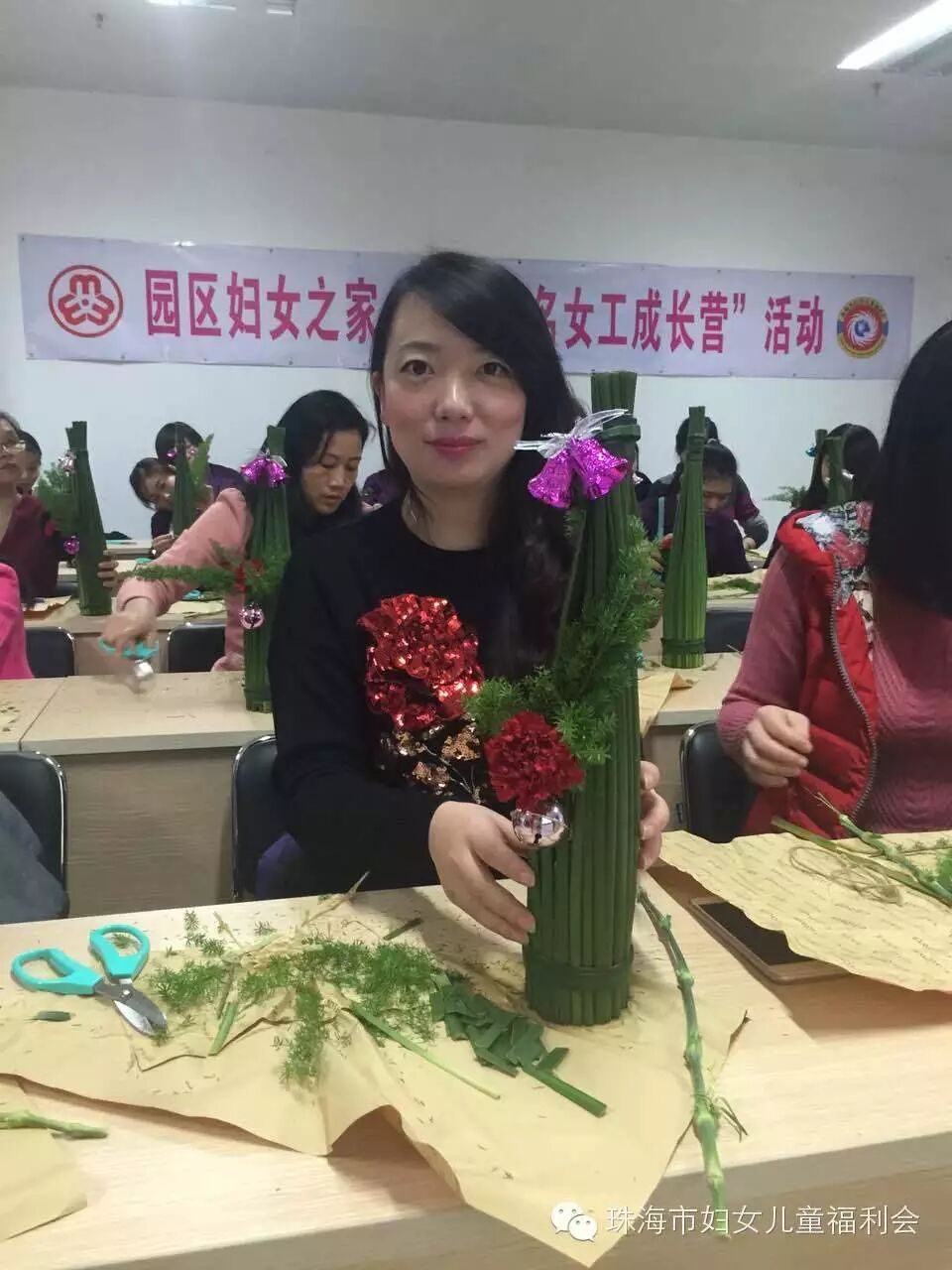 我会承接社会购买服务园区妇女之家——百名女工成长营项目于12月10日晚,在南屏科技园区管委会202室插花班拉开帷幕,我会联合专注新鲜花艺13年,积累了400多个花艺活动案例、借鲜花为顾客传达情义的人气花卉品牌——果然有花,为南屏工业园区的姐妹们,带来了一堂别致的、具有简约风,以圣诞为主题的花道体验课。让花道带走生活、工作的喧嚣与烦恼,让内心与久违的平静重逢。