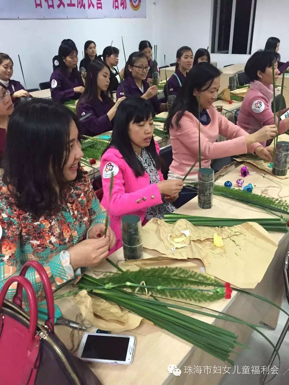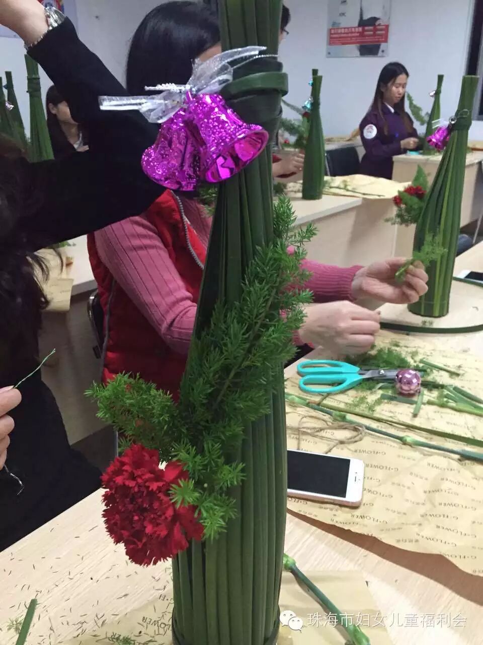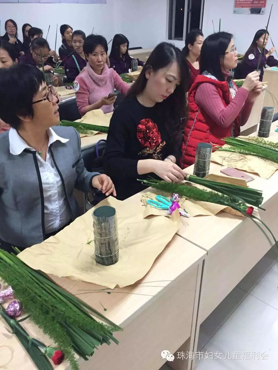 我会承接社会购买服务园区妇女之家——百名女工成长营项目于12月10日晚,在南屏科技园区管委会202室插花班拉开帷幕,我会联合专注新鲜花艺13年,积累了400多个花艺活动案例、借鲜花为顾客传达情义的人气花卉品牌——果然有花,为南屏工业园区的姐妹们,带来了一堂别致的、具有简约风,以圣诞为主题的花道体验课。让花道带走生活、工作的喧嚣与烦恼,让内心与久违的平静重逢。