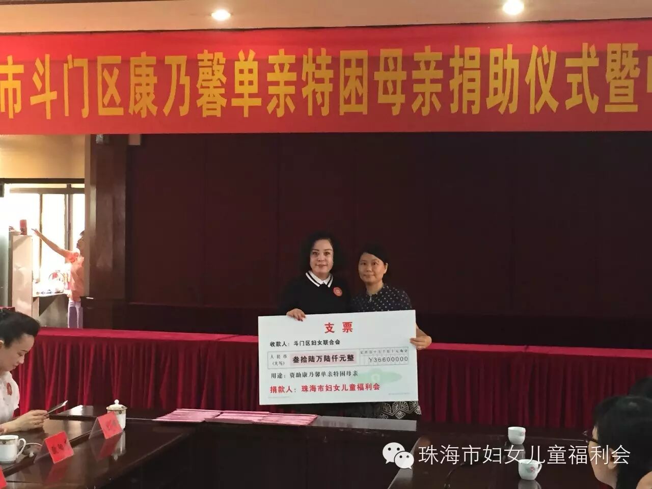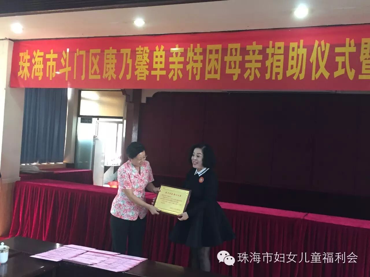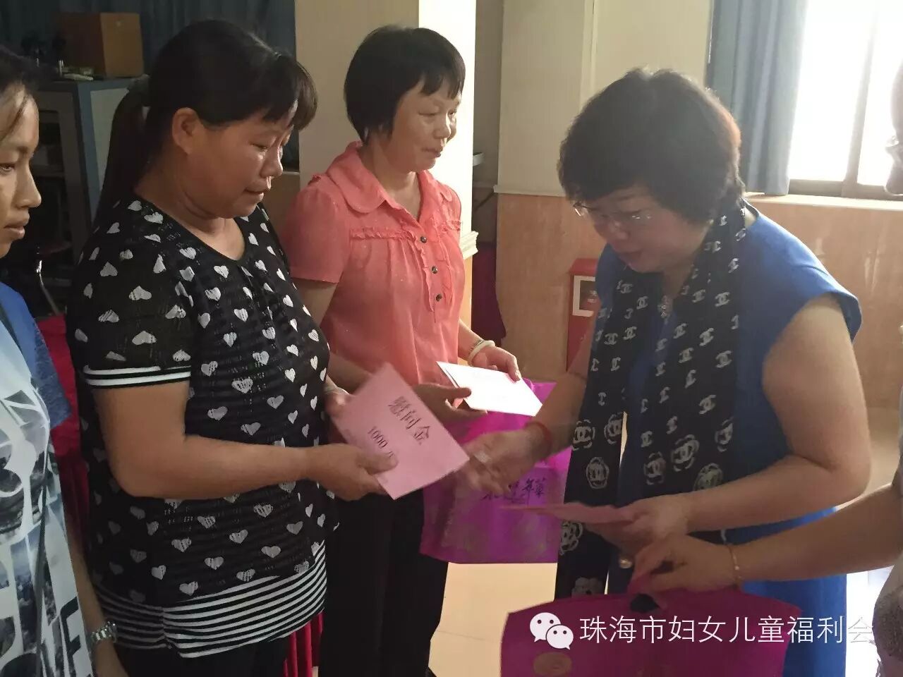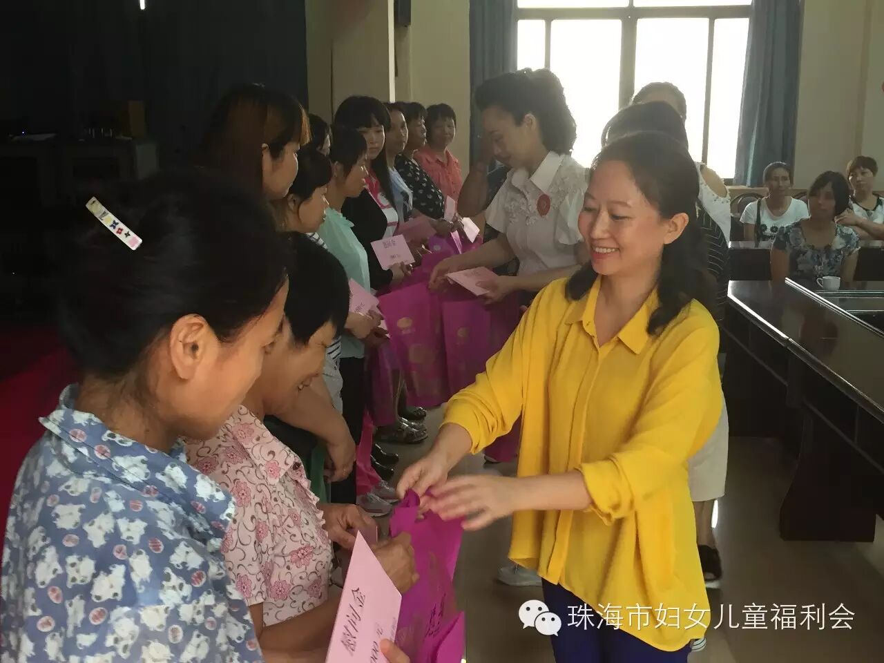 9月24日上午10:00, 以“与你牵手 温暖同行"为主题的斗门区2015年康乃馨单亲特困母亲捐助仪式暨中秋慰问活动,在斗门区人民政府2号会议室举行。市妇联主席玄阳、调研员胡约雅、会长陈伟光及我会会员、斗门区委常委、组织部部长王建灵一行到场参加。活动现场,我会会长陈伟光做为珠海市妇女儿童福利会代表,为斗门区妇联捐赠36.6万元支票,在场领导分别为我会会员颁赠荣誉牌匾,感谢我会为康乃馨单亲特困母亲活动的支持与贡献。会长陈伟光表示,康乃馨特困单亲母亲温暖行动开展了两年,80%的帮扶对象在斗门区,看到被帮扶的单亲母亲,面对生活乐观积极、充满自信,我们倍感欣慰,妈妈们不仅要承担照顾整个家庭的责任,还要积极的投入到工作当中,希望每个妈妈都能够坚强的面对生活所带给我们的压力,快乐生活。最后,由我会会员共同为斗门区30位单亲特困母亲发放慰问金38000元及慰问品,祝福她们度过一个愉快的中秋佳节!